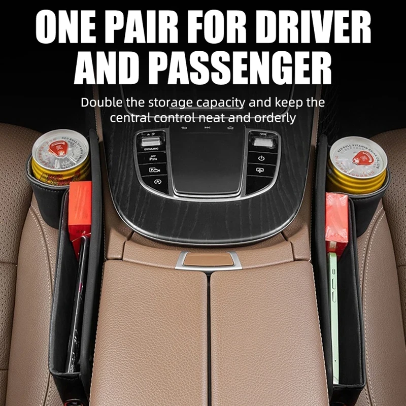 Car Seat Gap Filler Automotive Seat Leather Storage Box with Cup Holder Universal Seat Gap Organizer Adjustable Seat Storage Box