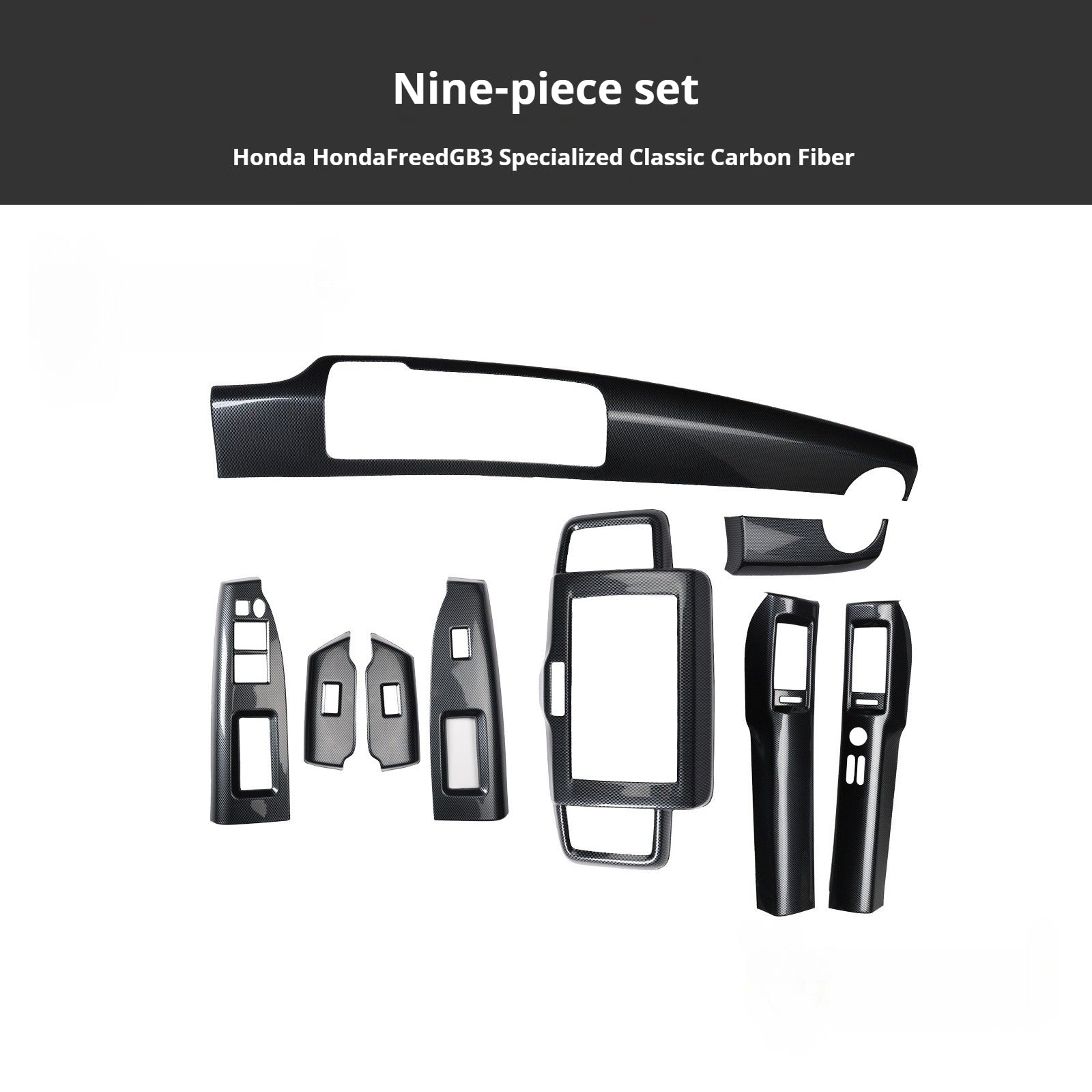 Transform your Freed GB3's interior with this premium carbon fiber-style steering wheel and center console trim set. Engineered for right-hand drive vehicles, these components deliver a sophisticated, modern aesthetic while enhancing grip and control. The lightweight design reduces unsprung weight, contributing to improved handling dynamics. The carbon fiber finish resists wear and maintains its appearance through daily use. Perfect for enthusiasts seeking a refined cabin upgrade that combines visual impact with functional benefits. Direct fit ensures seamless integration without modification to your vehicle's existing systems.