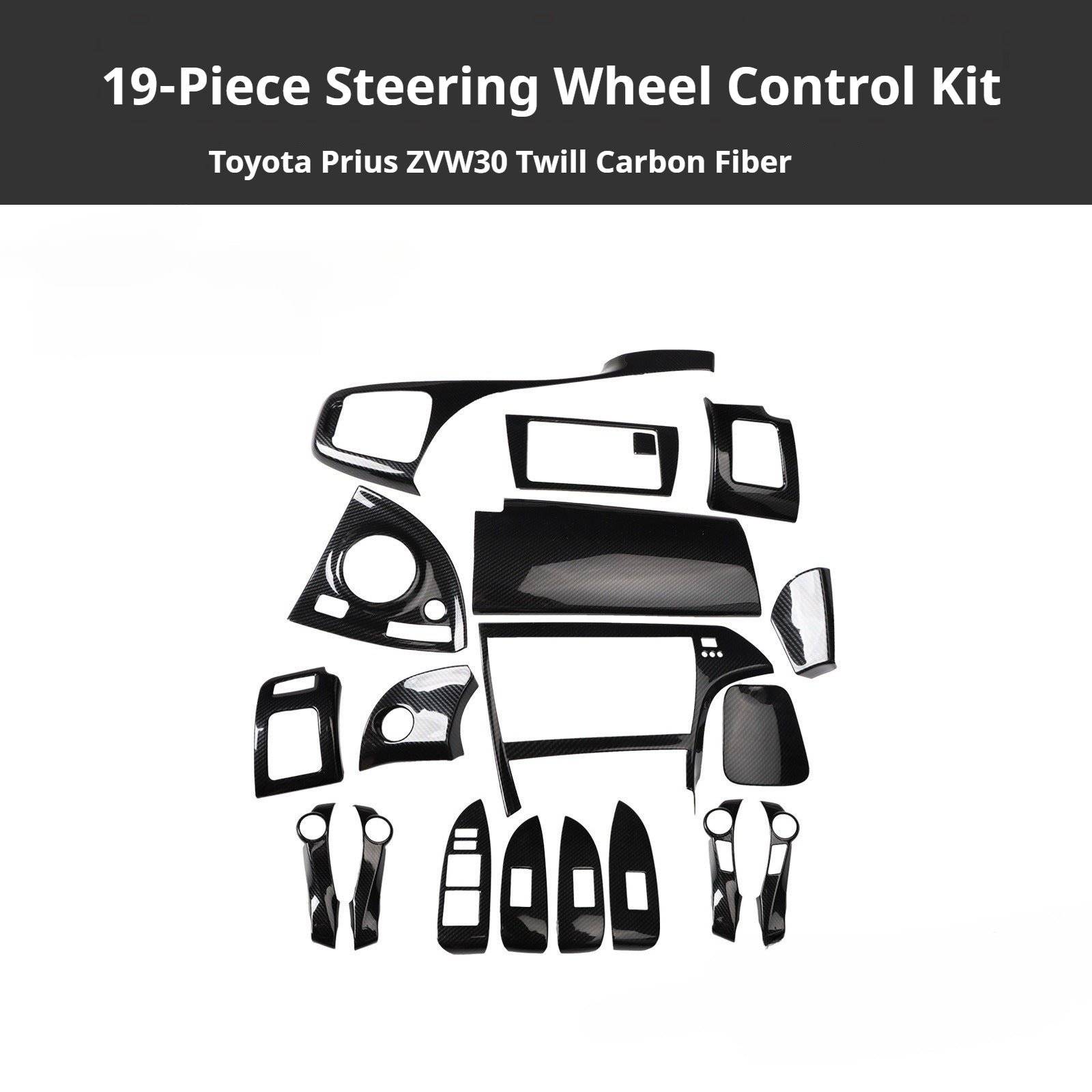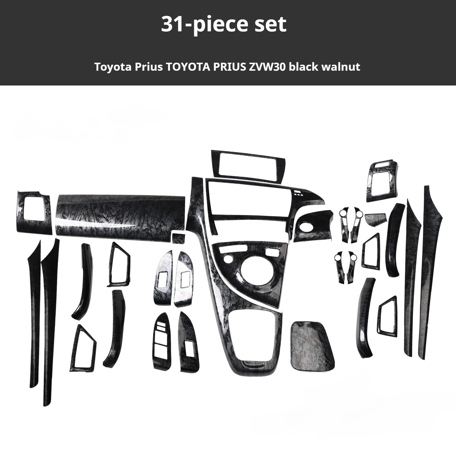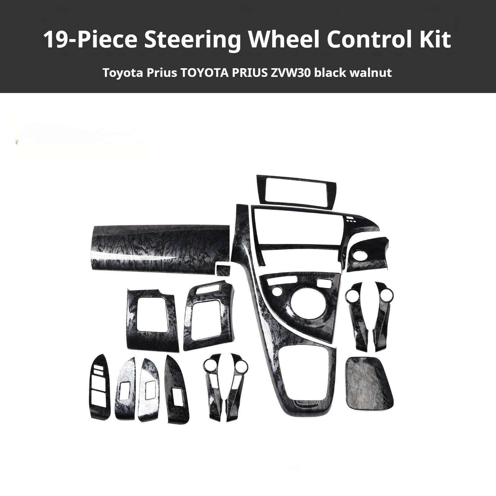 RHD Prius ZVW30 Peach Wood Carbon Fiber Pattern Dashboard, Instrument Panel, Steering Wheel, and Gear Shift Knob Interior Trim Decals